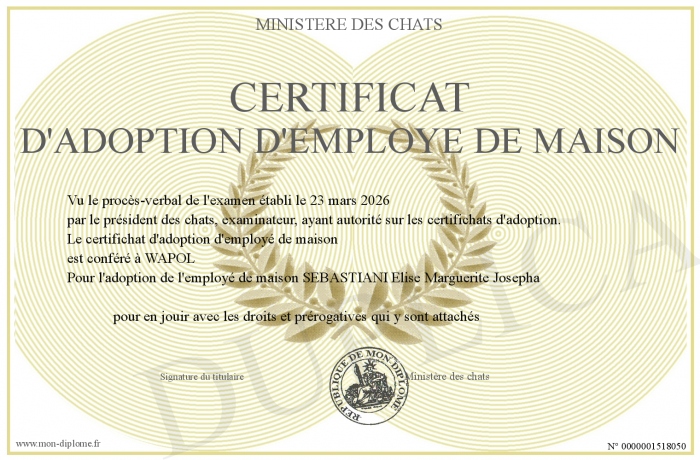 Envoyez par email votre certificat d'adoption d'employé de maison personalisé