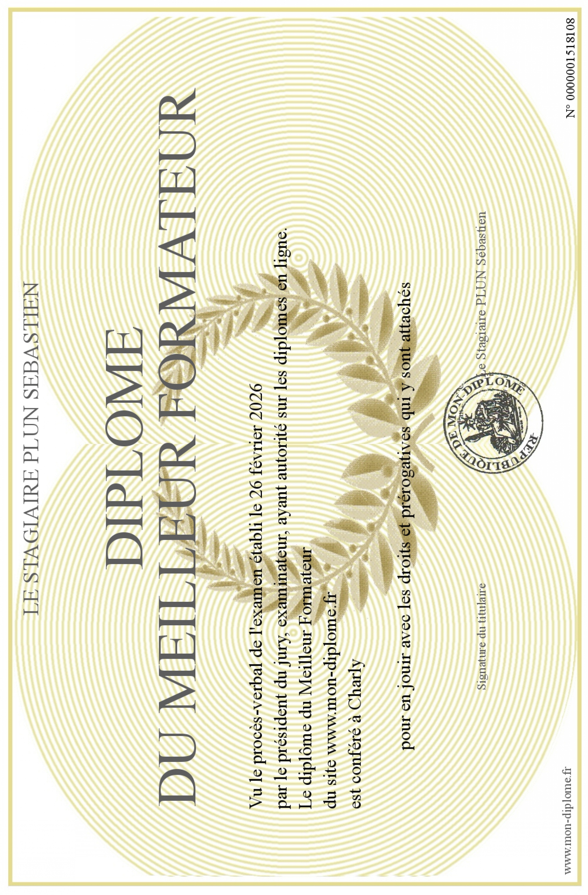 Envoyez par email votre Diplôme du Meilleur Formateur personalisé