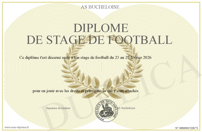 Envoyez par email votre Diplôme de stage de football personalisé