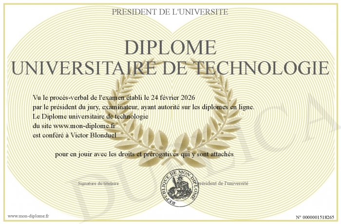 Envoyez par email votre Diplôme universitaire de technologie personalisé