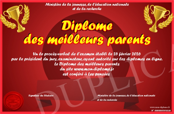 Envoyez par email votre Diplôme des meilleurs parents personalisé