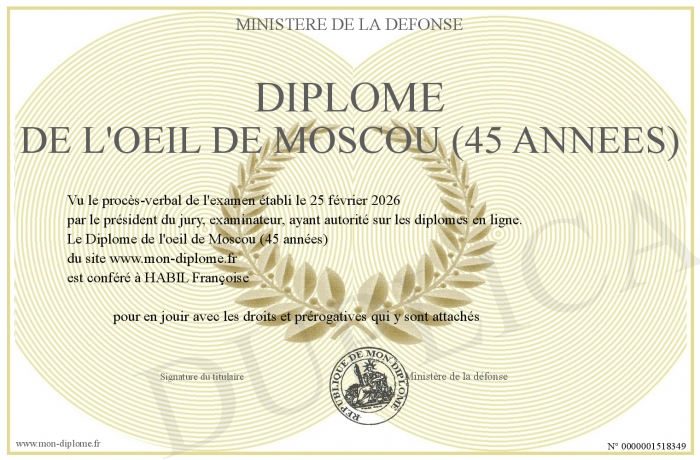 Envoyez par email votre Diplôme de l'oeil de Moscou (45 années) personalisé
