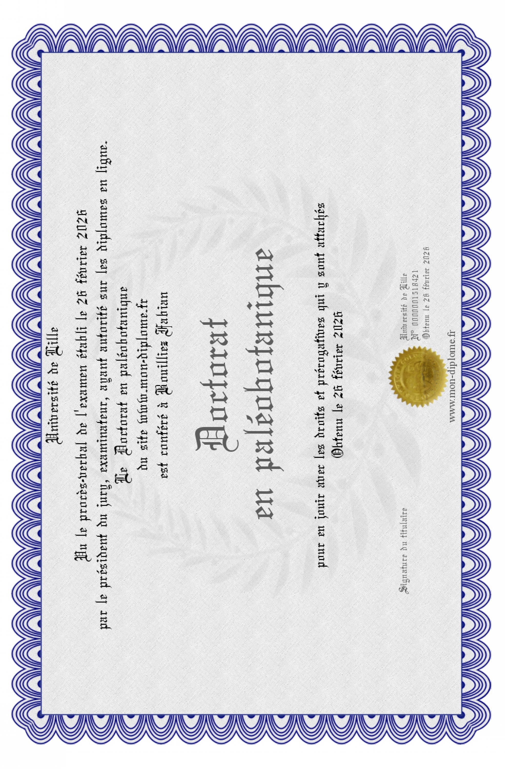 Envoyez par email votre Doctorat en paléobotanique personalisé