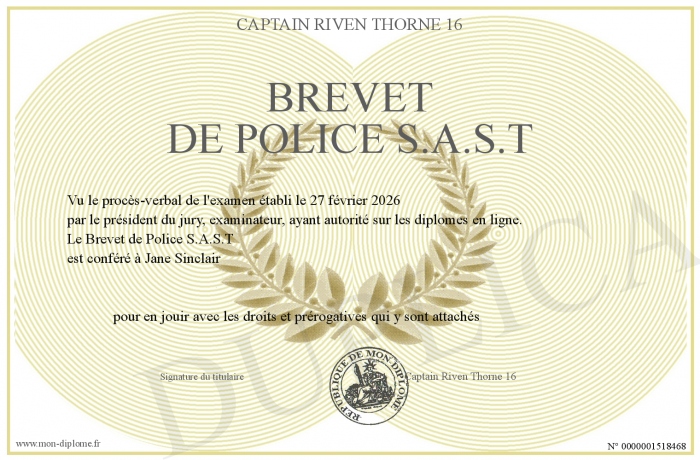 Envoyez par email votre Brevet de Police S.A.S.T personalisé