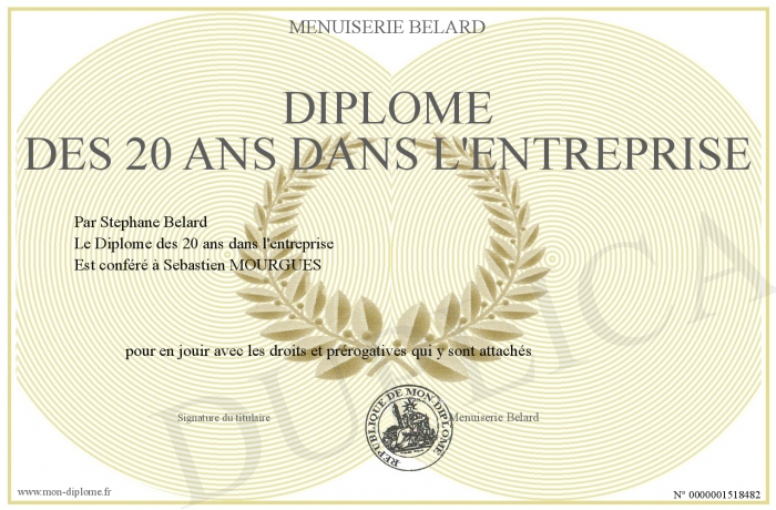 Envoyez par email votre Diplôme des 20 ans dans l'entreprise personalisé