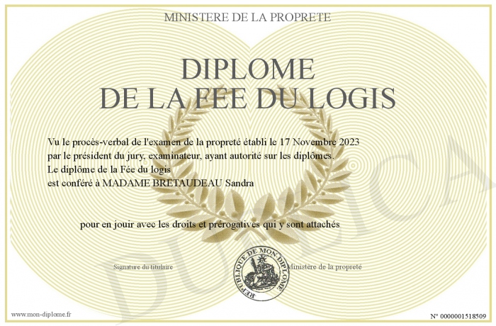 Envoyez par email votre Diplôme de la fée du logis personalisé