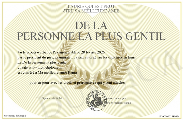 Envoyez par email votre De la personne la plus gentil personalisé