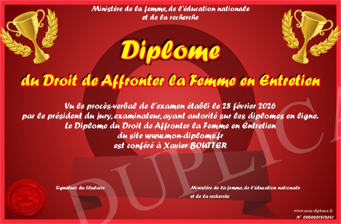 Envoyez par email votre Diplôme du Droit de Affronter la Femme en Entretien personalisé