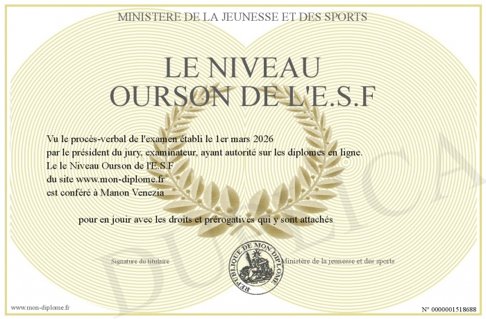 Envoyez par email votre le Niveau Ourson de l'E.S.F personalisé