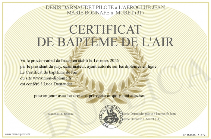 Envoyez par email votre Certificat de baptEme de l'air personalisé
