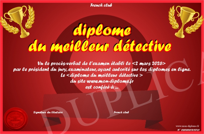 Envoyez par email votre diplôme du meilleur détective personalisé
