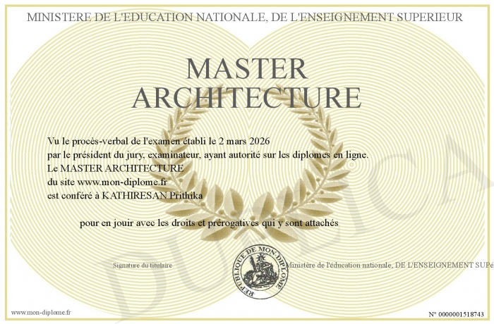 Envoyez par email votre MASTER ARCHITECTURE personalisé