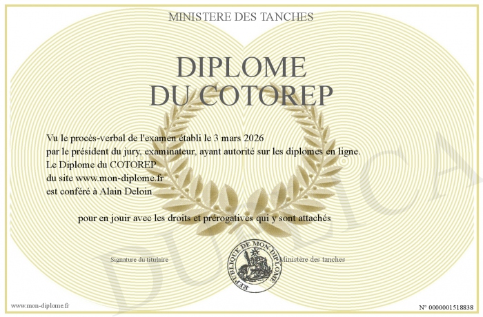 Envoyez par email votre Diplôme du COTOREP personalisé