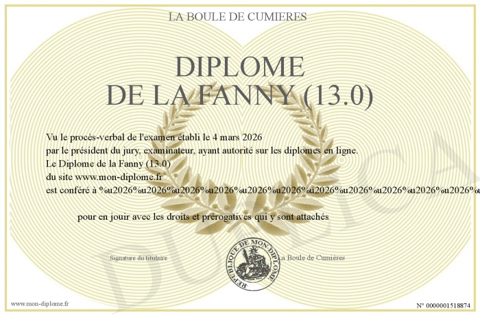 Envoyez par email votre Diplôme de la Fanny (13.0) personalisé