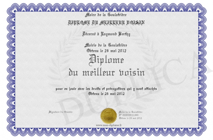 • Diplôme du meilleur voisin