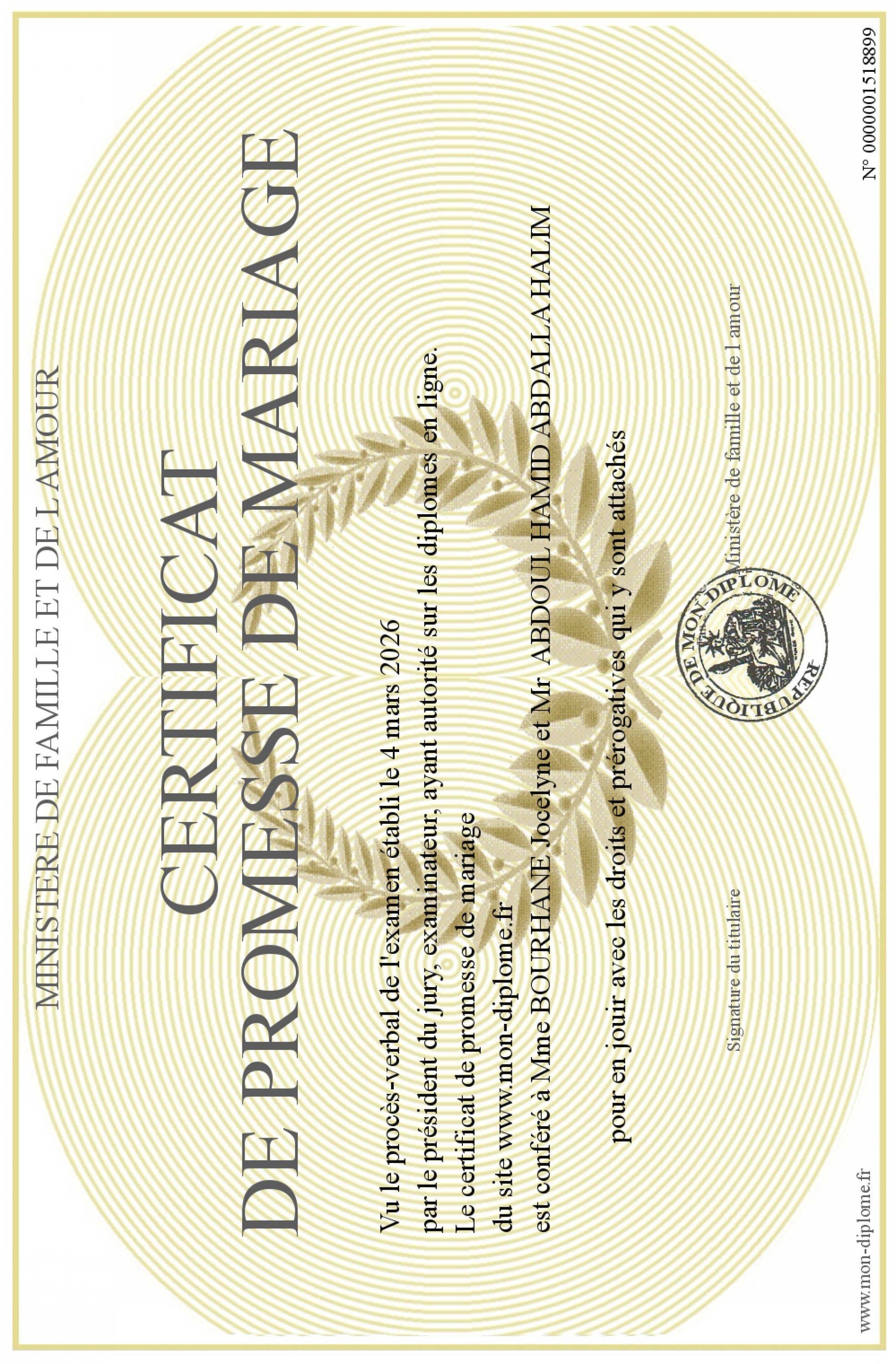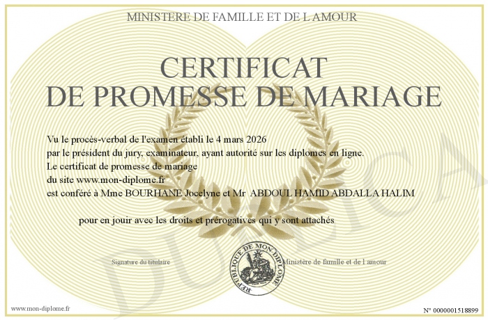 Envoyez par email votre certificat de promesse de mariage personalisé