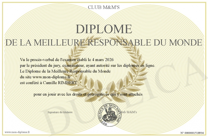 • Diplôme de la Meilleure Responsable du Monde