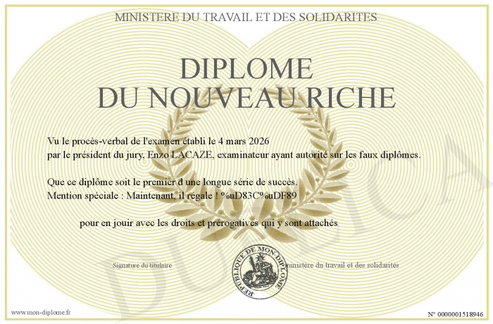 Envoyez par email votre Diplôme du nouveau riche personalisé