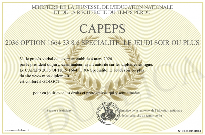 Envoyez par email votre CAPEPS 2036 OPTION 1664 33 8.6 Spécialité: le Jeudi soir ou plus personalisé