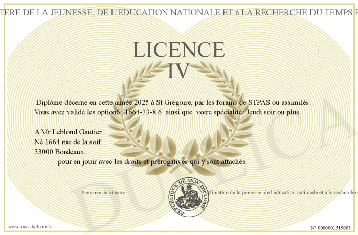 Envoyez par email votre LICENCE IV personalisé
