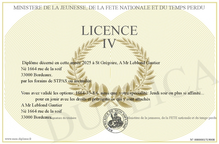 Envoyez par email votre LICENCE IV personalisé