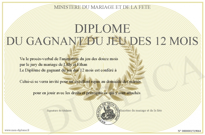 Envoyez par email votre Diplôme du gagnant du jeu des 12 mois personalisé