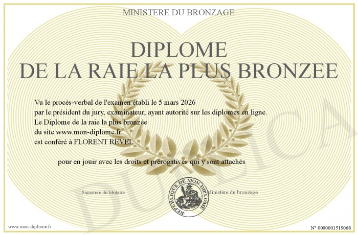 Envoyez par email votre Diplôme de la raie la plus bronzée personalisé