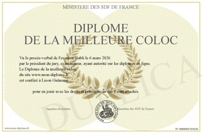 Envoyez par email votre Diplôme de la meilleure coloc personalisé