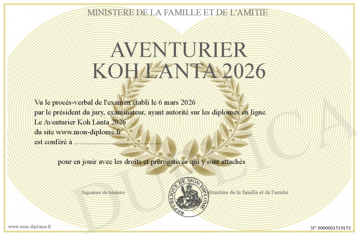 Envoyez par email votre Aventurier Koh Lanta 2026 personalisé