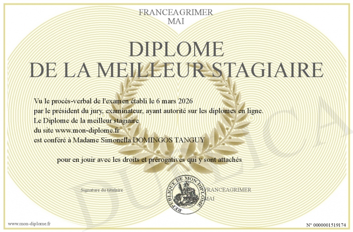 Envoyez par email votre Diplôme de la meilleur stagiaire personalisé
