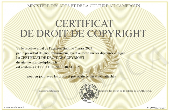 Envoyez par email votre CERTIFICAT DE DROIT DE COPYRIGHT personalisé