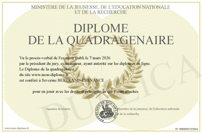 Envoyez par email votre Diplome de la quadragenaire personalisé