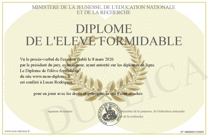 Envoyez par email votre Diplôme de l'élève formidable personalisé