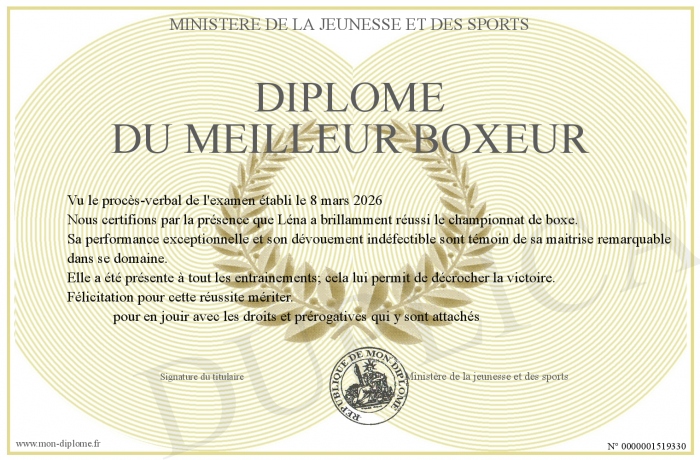 Envoyez par email votre Diplôme du meilleur boxeur personalisé