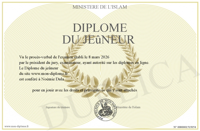 Envoyez par email votre Diplôme du jeûneur personalisé