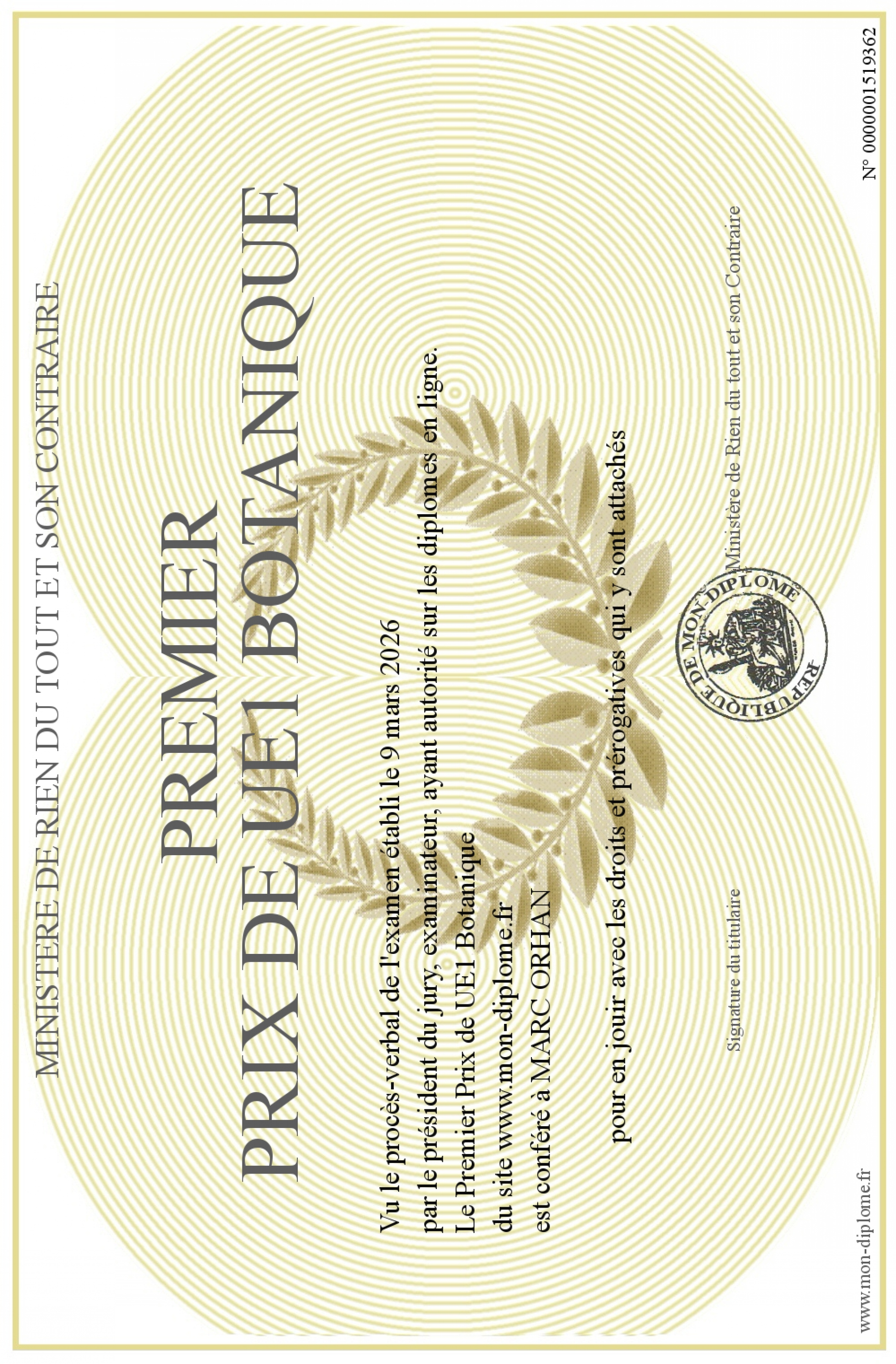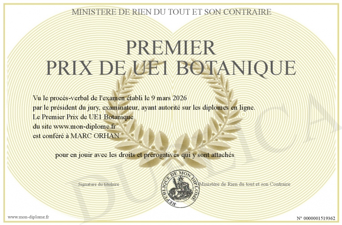 Envoyez par email votre Premier Prix de UE1 Botanique personalisé