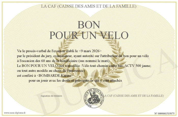 Envoyez par email votre BON POUR UN VELO personalisé