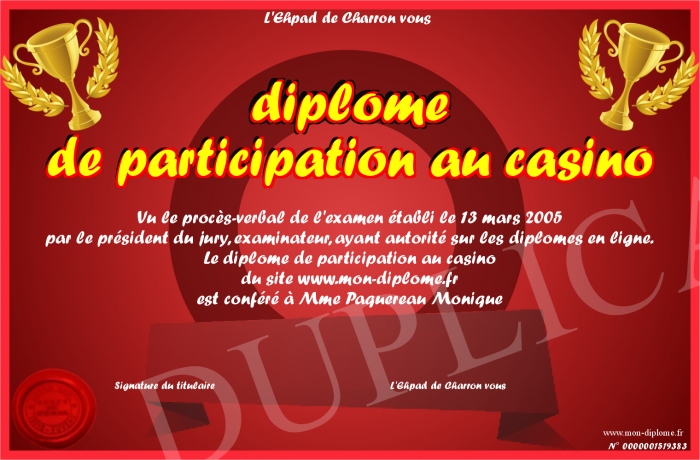 Envoyez par email votre diplôme de participation au casino personalisé