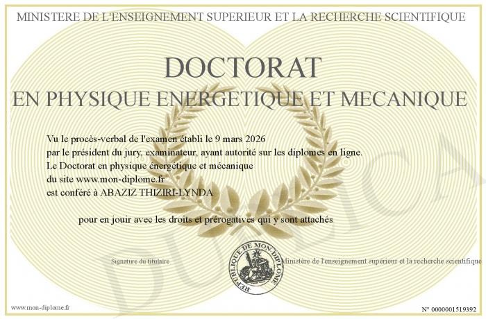 Envoyez par email votre Doctorat en physique énergétique et mécanique personalisé