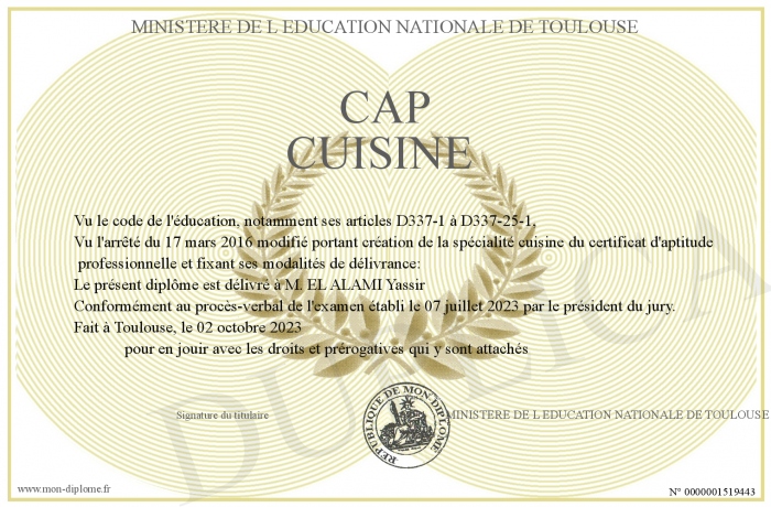 Envoyez par email votre CAP CUISINE personalisé