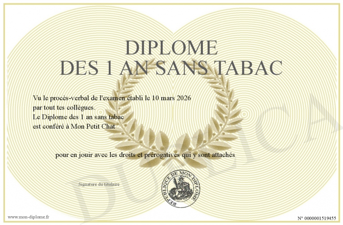 Envoyez par email votre Diplôme des 1 an sans tabac personalisé