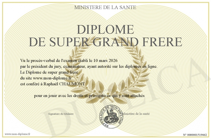 Envoyez par email votre Diplôme de super grand frère personalisé