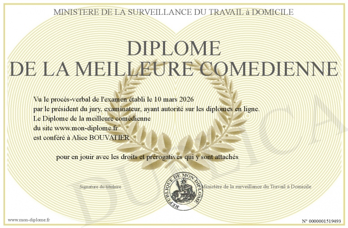 Envoyez par email votre Diplôme de la meilleure comédienne personalisé