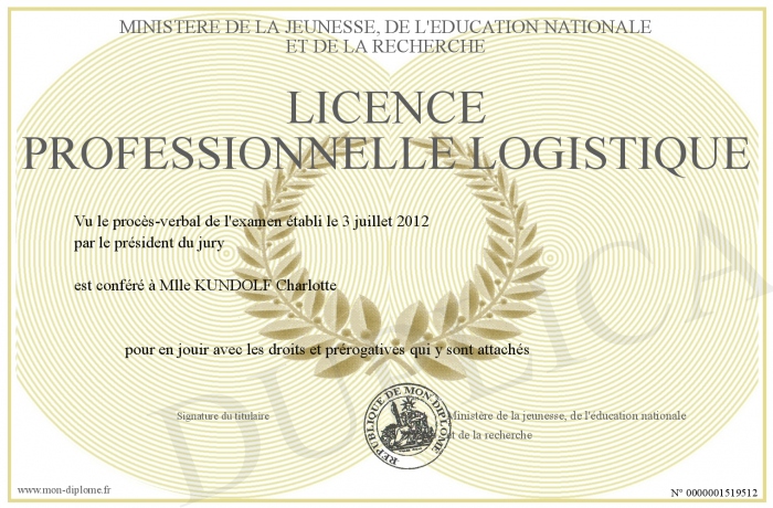 Envoyez par email votre Licence Professionnelle Logistique personalisé