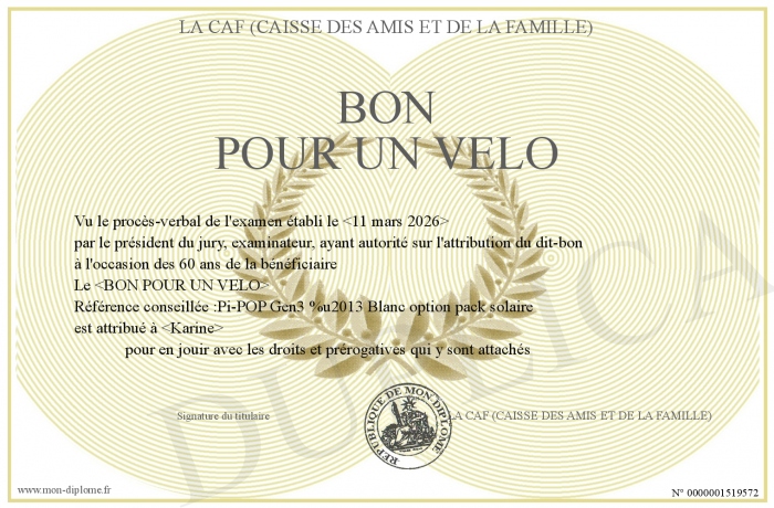 Envoyez par email votre BON POUR UN VELO personalisé