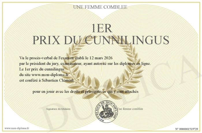 Envoyez par email votre 1er prix du cunnilingus personalisé