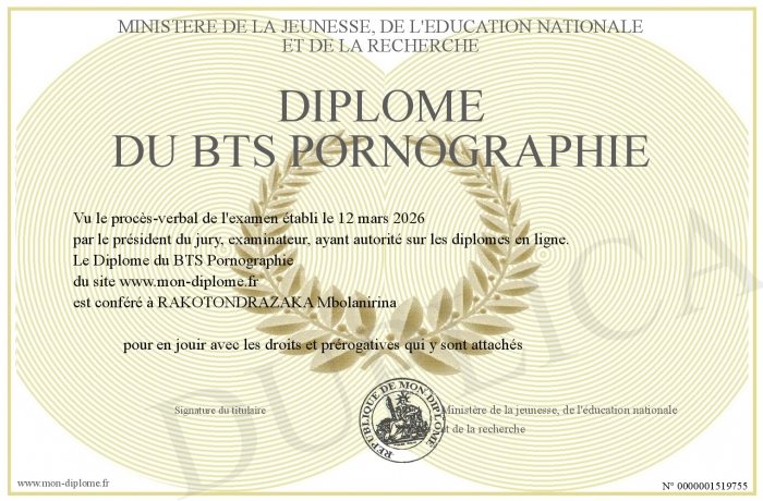 Envoyez par email votre Diplôme du BTS Pornographie personalisé