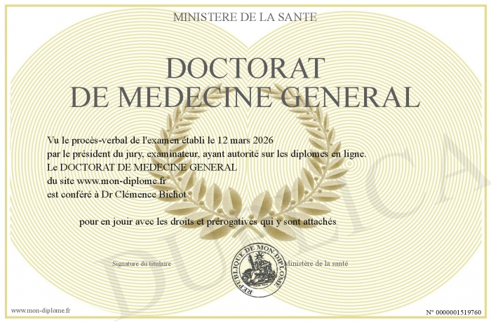 Envoyez par email votre DOCTORAT DE MEDECINE GENERAL personalisé
