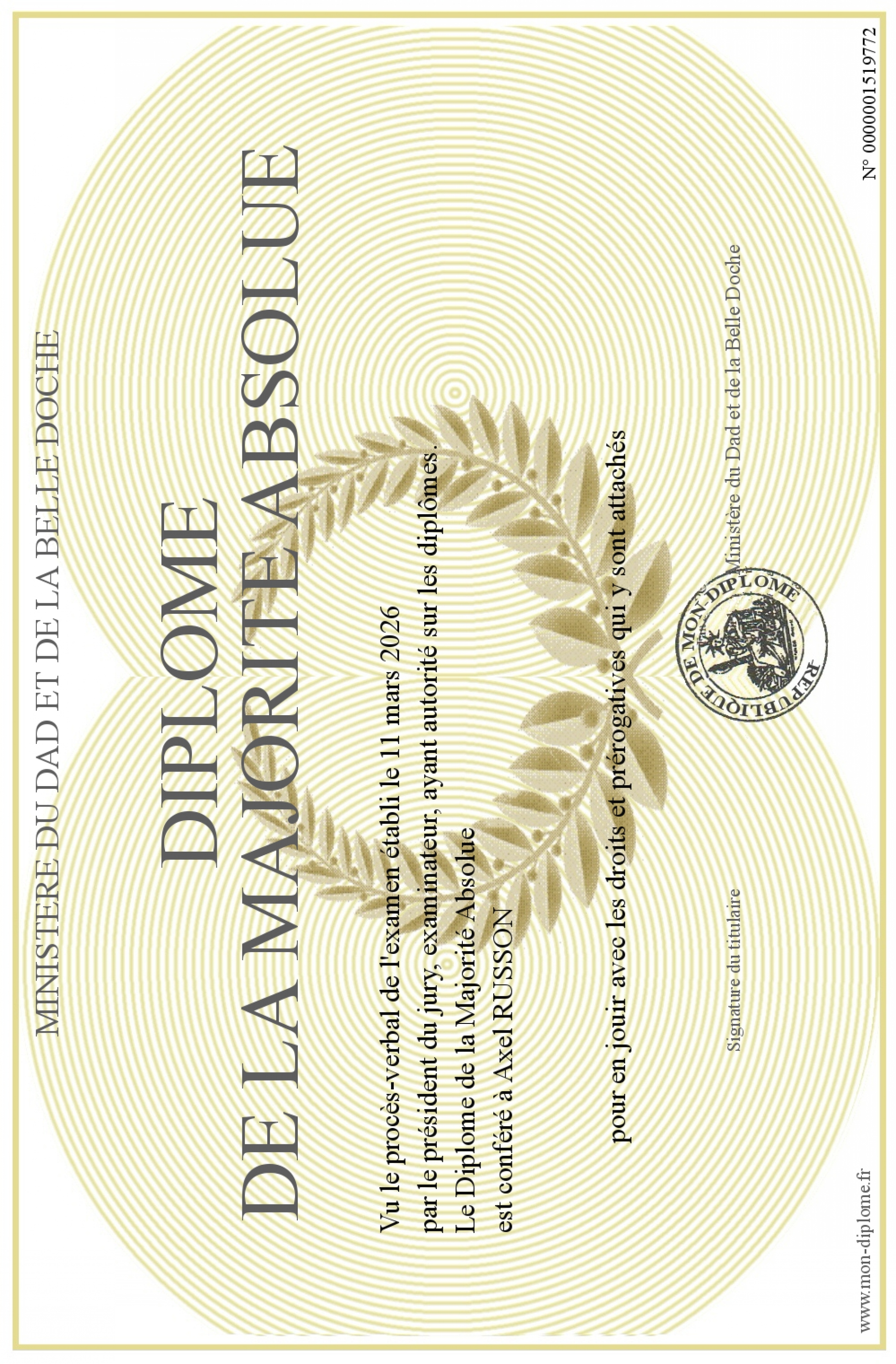 Envoyez par email votre Diplôme de la Majorité Absolue personalisé