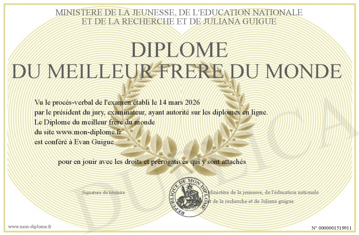 Envoyez par email votre Diplôme du meilleur frere du monde personalisé